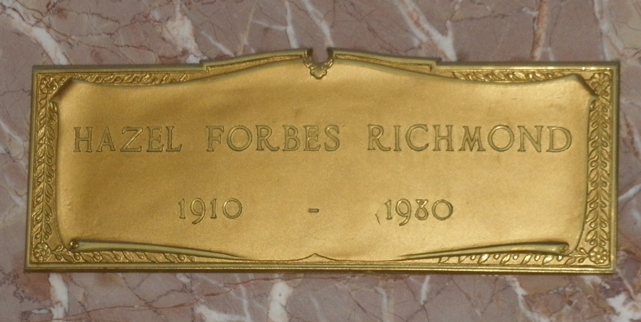 Hazel Forbes died in Los Angeles on Nov. 19. 1980, a week before her 70th birthday. Her crypt marker identifies her as "Hazel Forbes Richmond." Although this was not her longest marriage, it was certainly her most profitable.