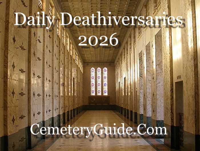 celebrities and notable people in cemeteries Follow me on Twitter/X and/or Facebook for cemetery updates, daily deathiversaries, news and photos. They're here ...