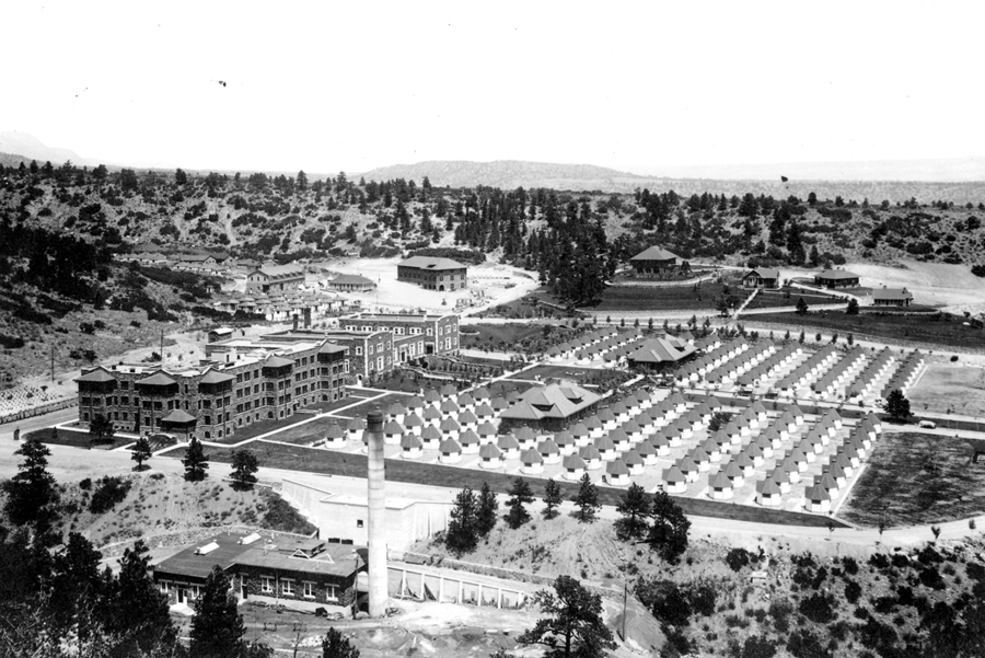 The Woodmen Sanatorium was essentially a self-contained city, with its own train station, power plant, reservoir, administration buildings, laundry, auditorium and the state's largest dairy herd. The property also contained 245 single-patient "TB huts." As tuberculosis treatments improved, the Sanatorium closed in 1947.
